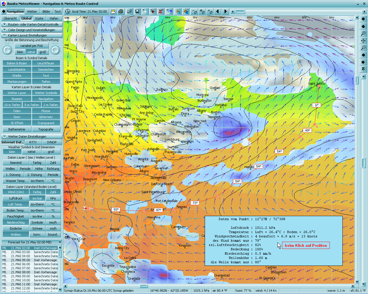 aber die meteorologische Routen-Kontrolle. Sie sehen auf den