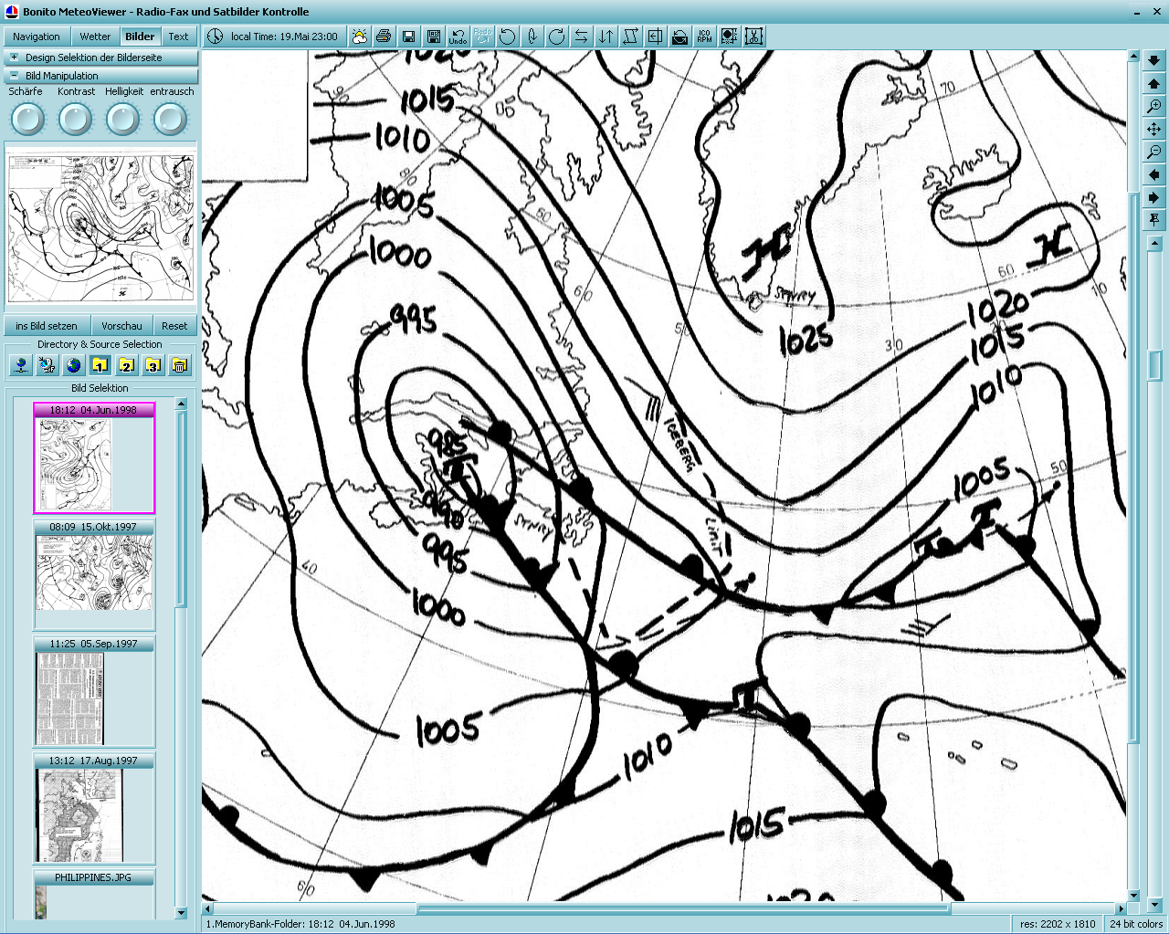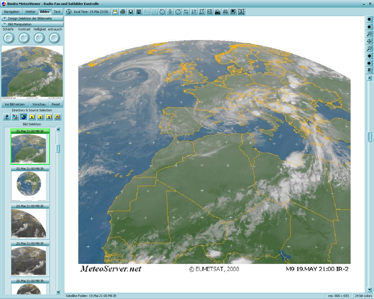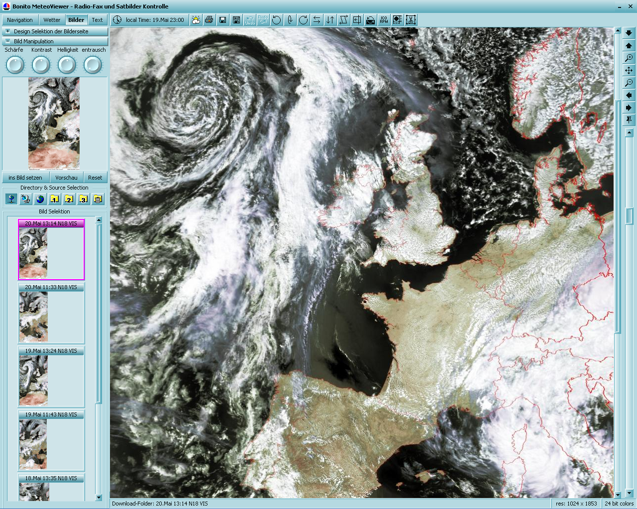 als Wetterfax vom Radioempfang stammen. Es gibt eine spezielle Sektion für Serien von Satellitenbildern,