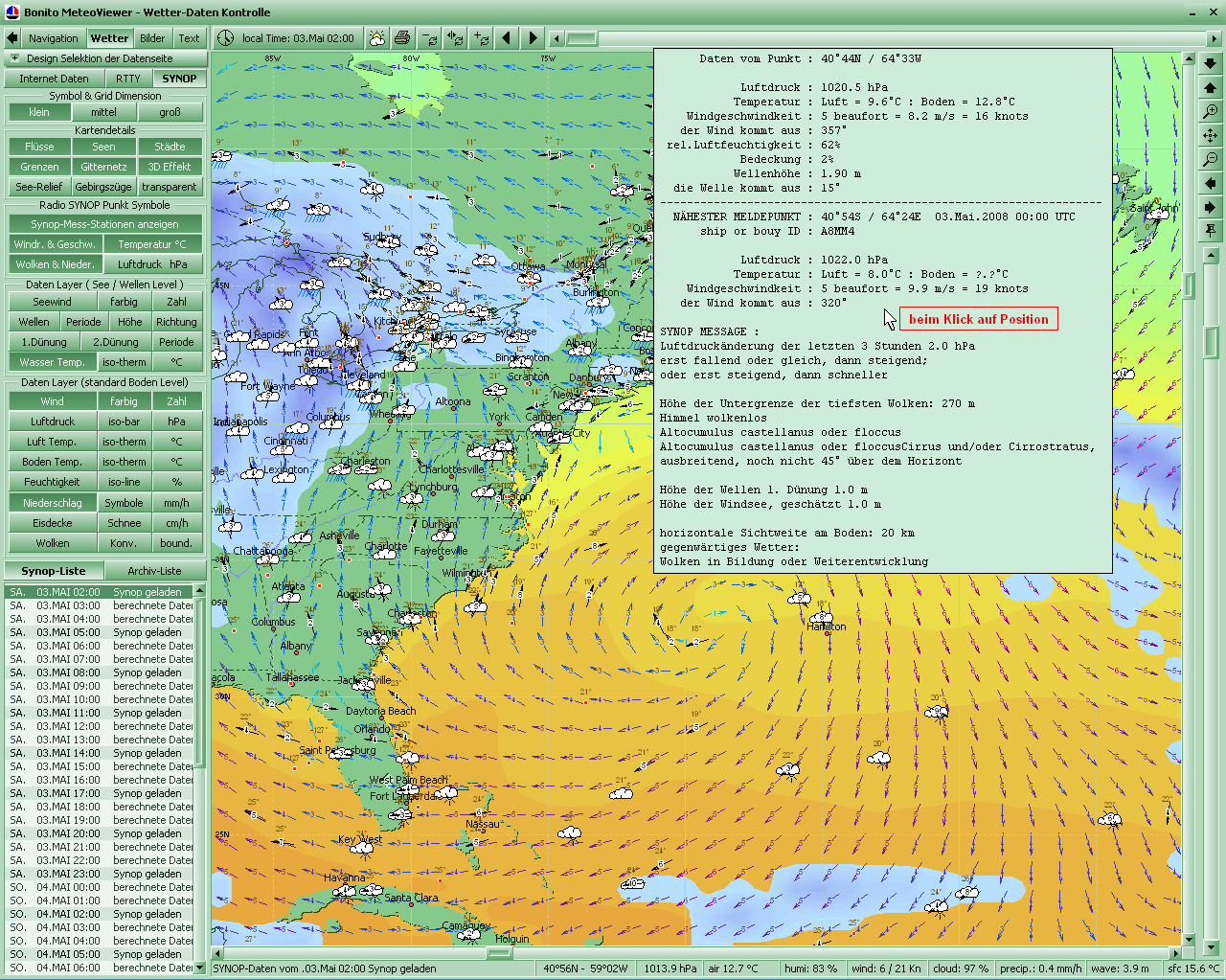 Internet per MeteoServer geladen wurden oder als Synopdaten vom