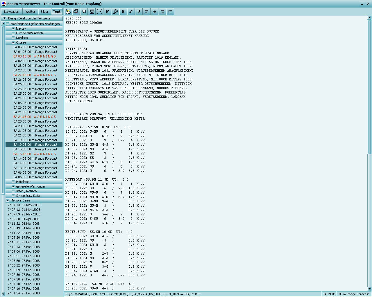 suchen muss. Diese Texte können vom Navtex stammen oder vom RTTY.