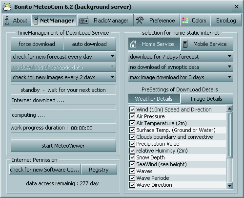 off weather news the MeteoCom is used. Forn this you need Pentium-PC with