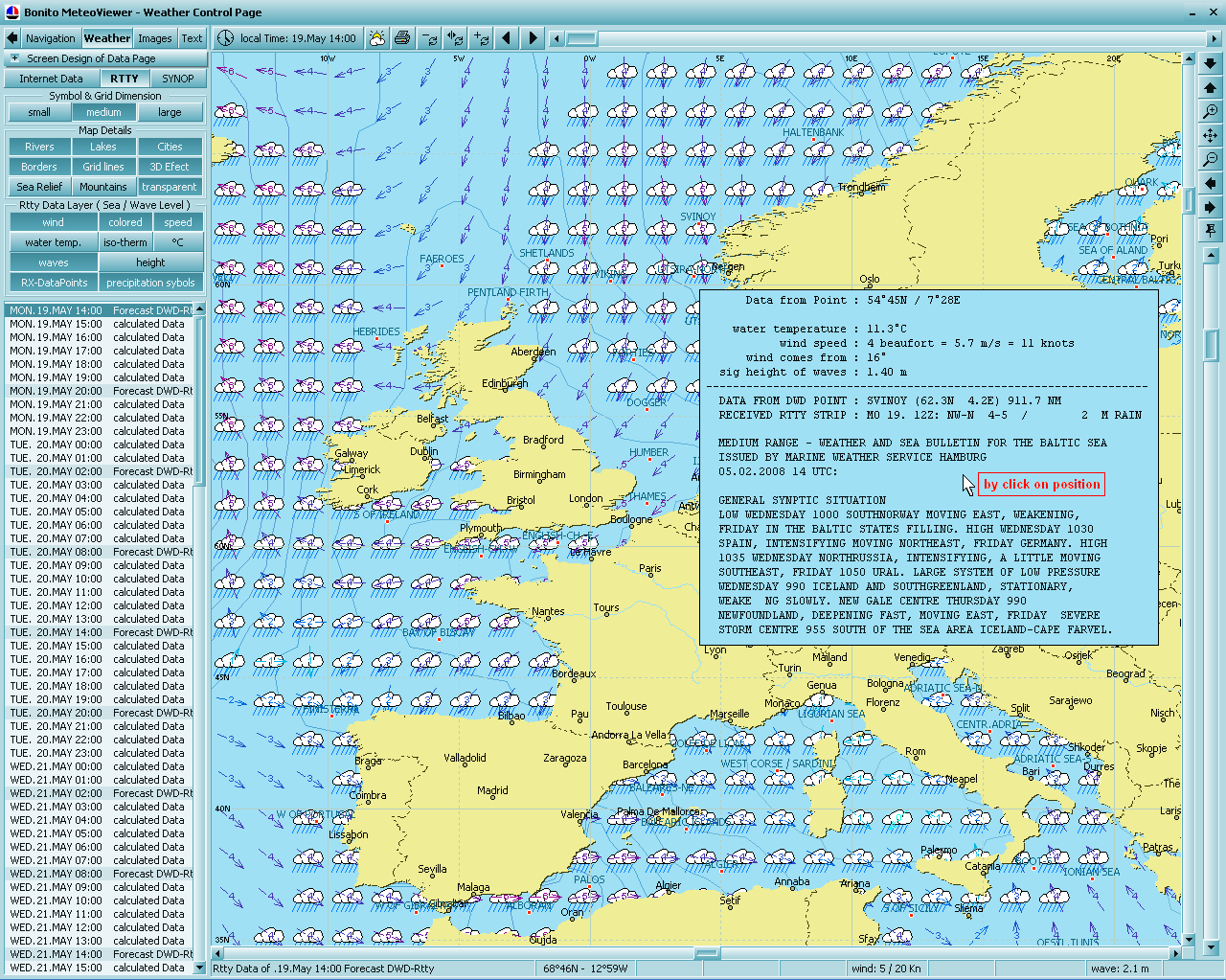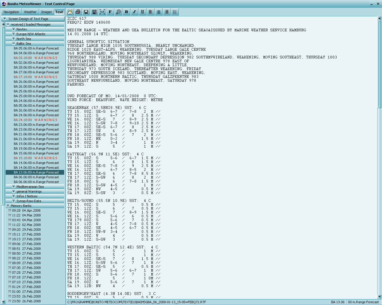 same manner. The MeteoViewer has four sections and are called Weather, Navigation, Images and Text. They are explained in the followingt: